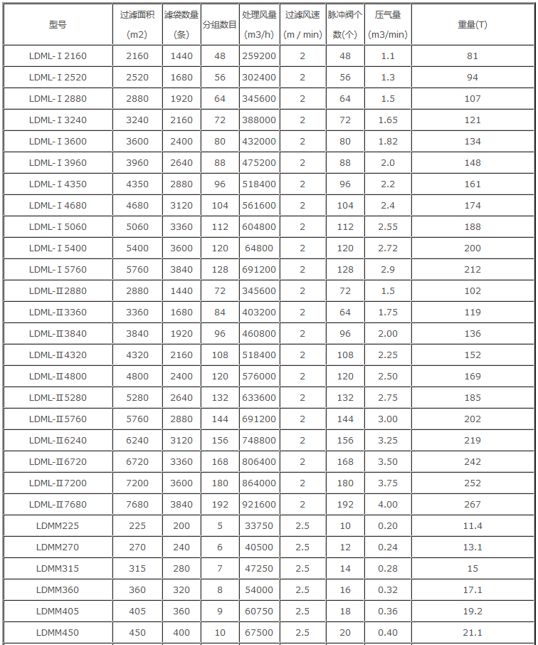 處理風(fēng)量:259200 -- 691200m3/h LDML--II型